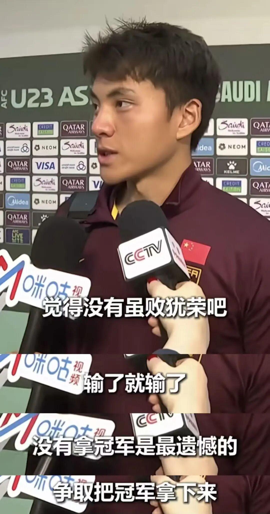 “没有拿冠军是最遗憾的”,还说“我觉得没有虽败犹荣吧,输了就是输了,回去再总结吧,然后以后还有机会的话,争取把冠军拿下来”。